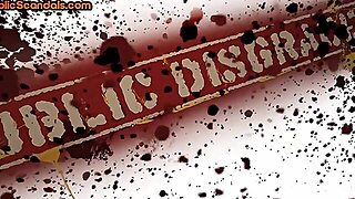 Public anal lady humiliated in FFM threesome in front of voyeurs