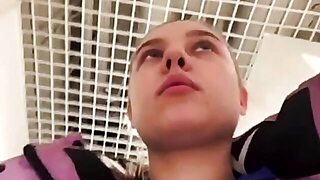 Deepthroating amateur smallboobs slut fucked in voyeur POV