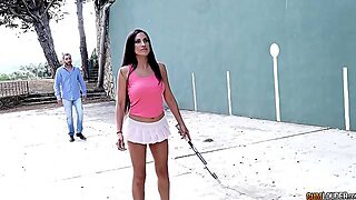 Pretty college teen Kristen Scott shows panties upskirt to seduce Danny Mountain