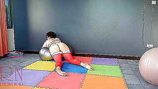 Flexi beauty rubs clit while her trainer smashes her wet cunt