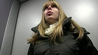 Lovely blonde doll shows cock-sucking skills in cab