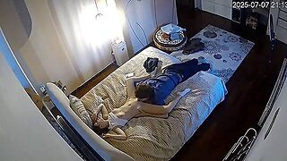 Amateur couple Roxy Rose makes love on the bed, spy cam recording