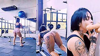 Hot Vita Marshall Sucks Gothic Voyeurs Cock Hard at the Gym