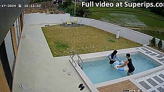 HIDDEN web cam - mighty three way BY THE POOL IN PARADISE