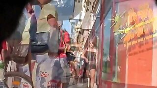 Voyeur enjoys looking downblouse of hot, adorable Asian girls.