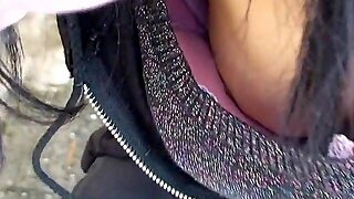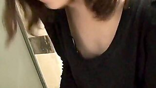 Close-up downblouse of cute asian with perky tits and nice nipples