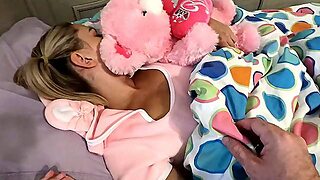I woke up my stepdaughter and stuck a big lollipop in her cock-squeezing twat