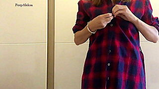Camera in a fitting room! Beautiful brunette tries on underwear!
