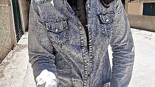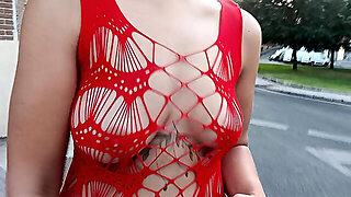 I flash my tits and pussy while walking in a see-through dress