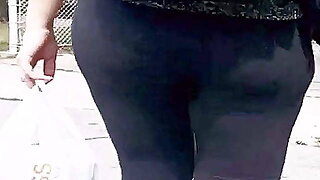 FETISH UNCENSORED TAUT REAL LARGE ASS MAMA IN TIGHTS LEGGINGS SPANDEX FETISH