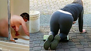 My stepmother likes to clean the house with very tight clothes to excite me and end up fucking her