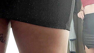 Spandex, debajo de las faldas, culo a boca, Nylon