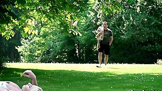 Old man fucks sexy blonde in the public park