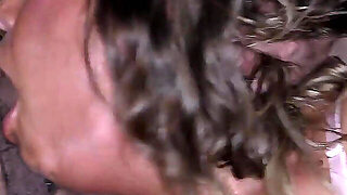 Two slutty moms getting group fucked in a gang bang orgy