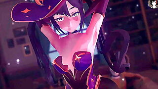 Genshin Impact - Hu Tao Squirt Dance + Gradual Undressing (3D HENTAI)