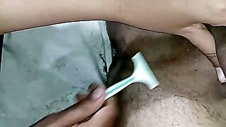 Shaving my vagina and hairy ass in an incredible view