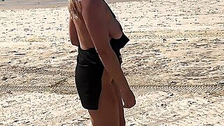 Sloppy Beach Walk: Blonde Shows Her Pussy & Boobs in Public - Exposed in Public