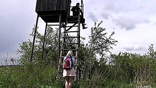voyeur filming a extreme hot german milf which gets rough interracial banged in the woods